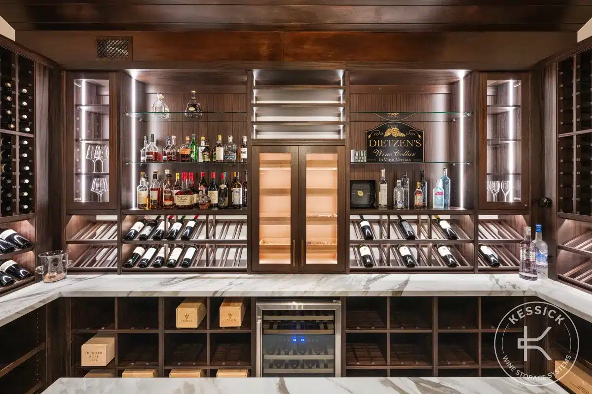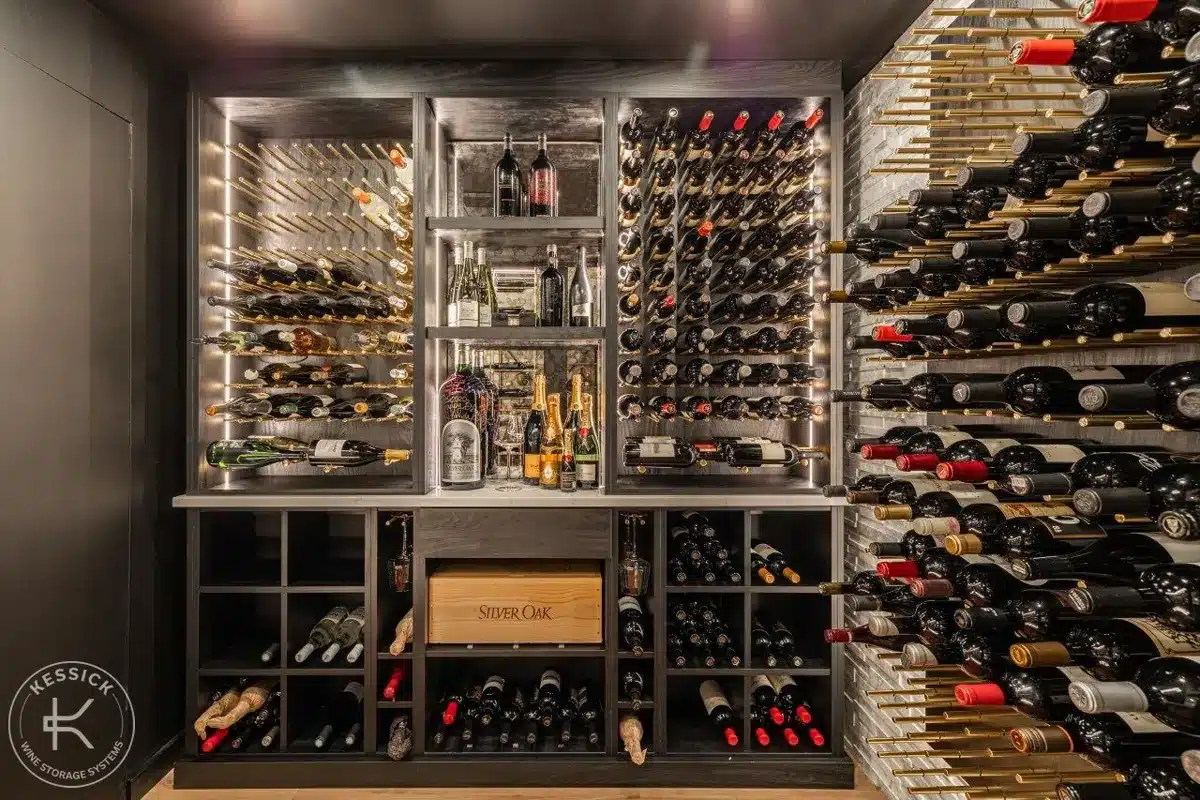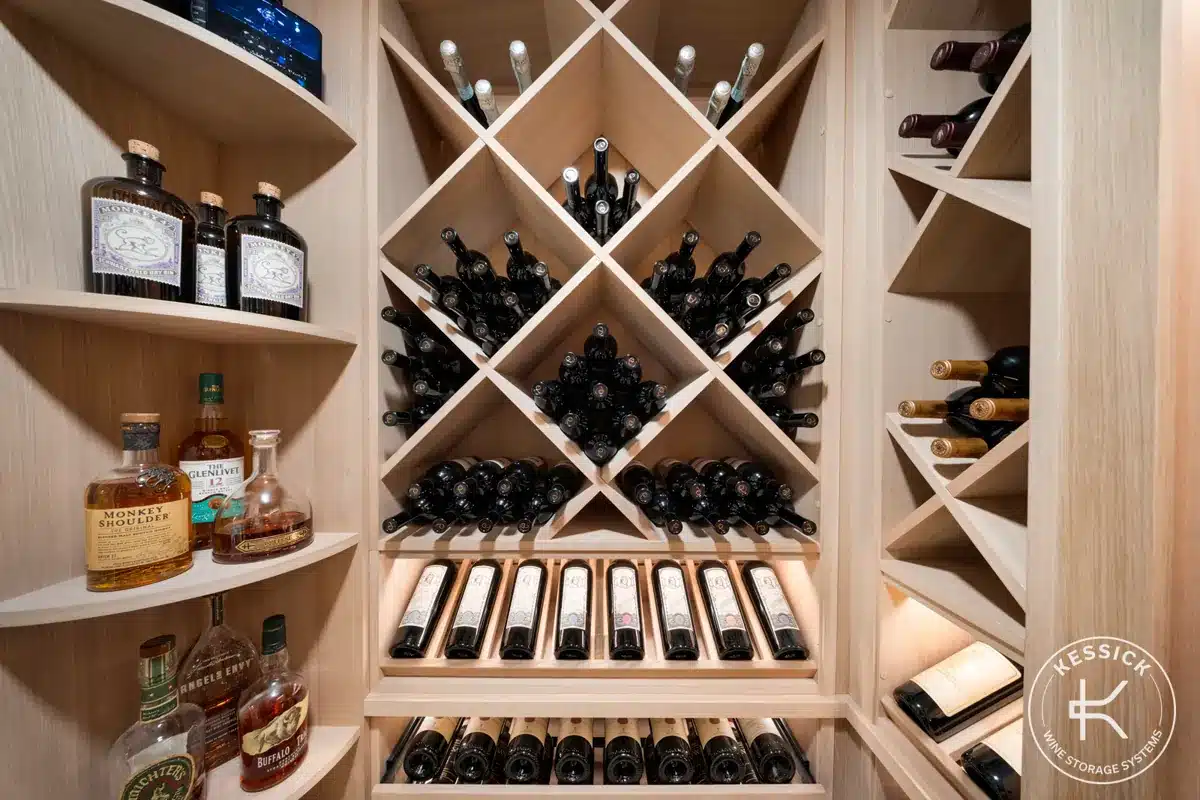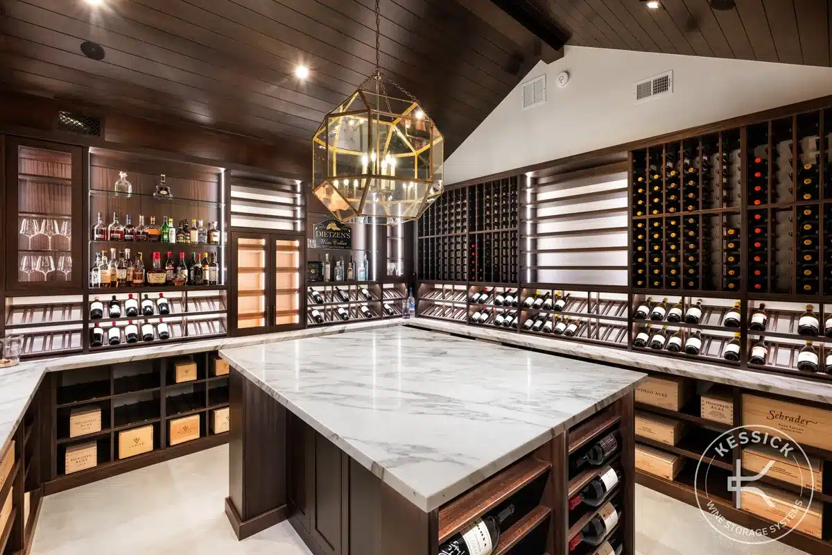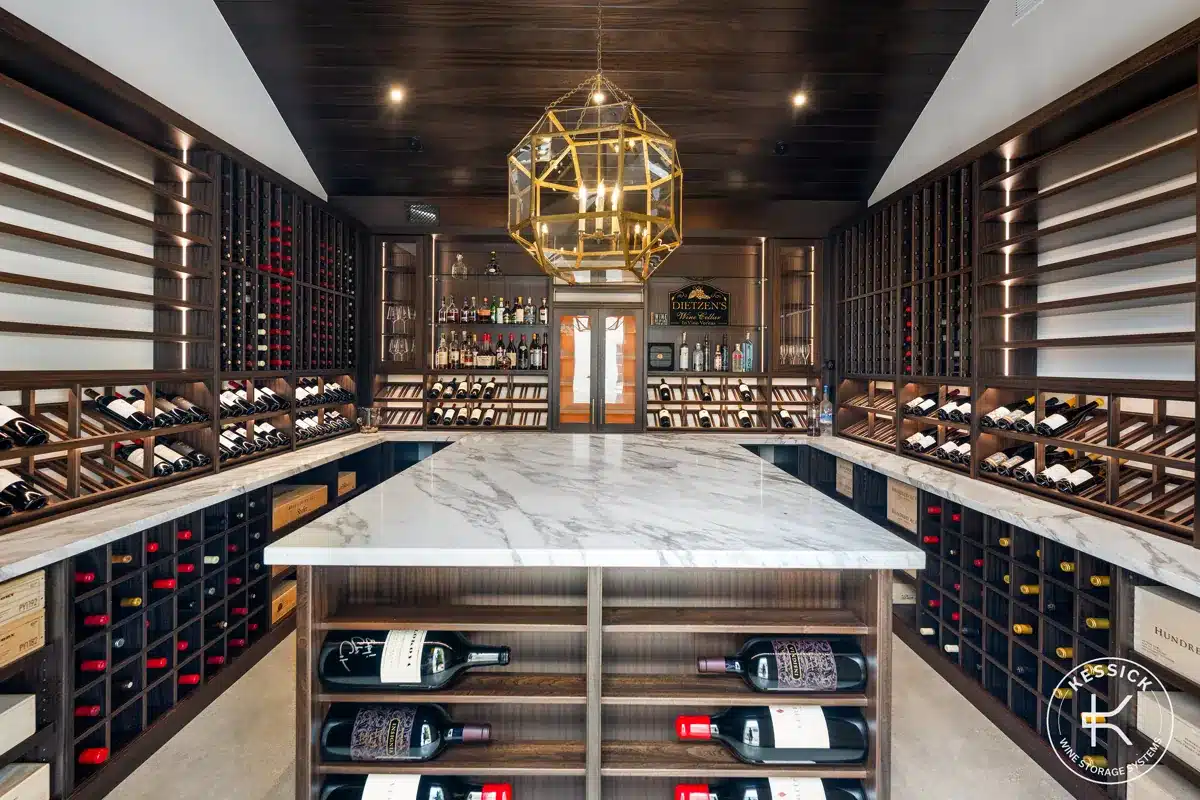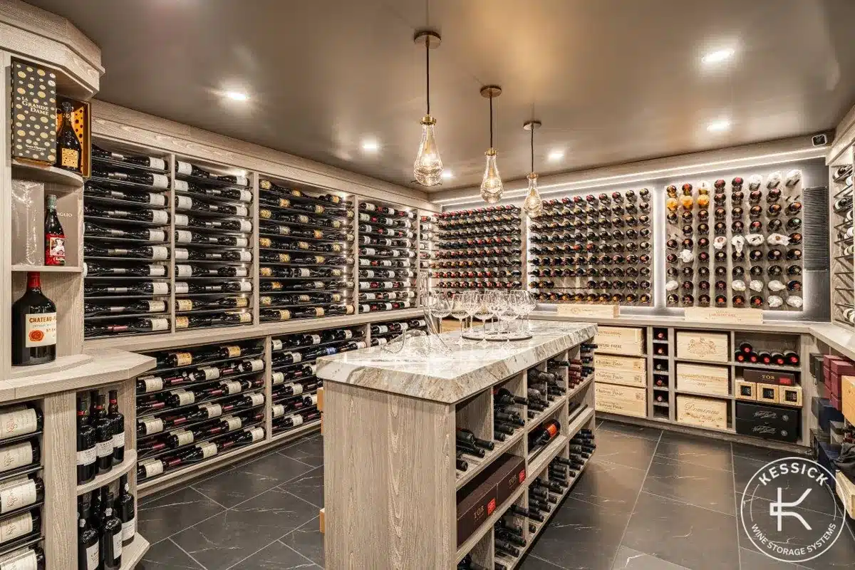 Every project photographed in this gallery was designed and manufactured by Kessick Wine Storage Systems. Kessick sells to a limited network of authorized national dealers.