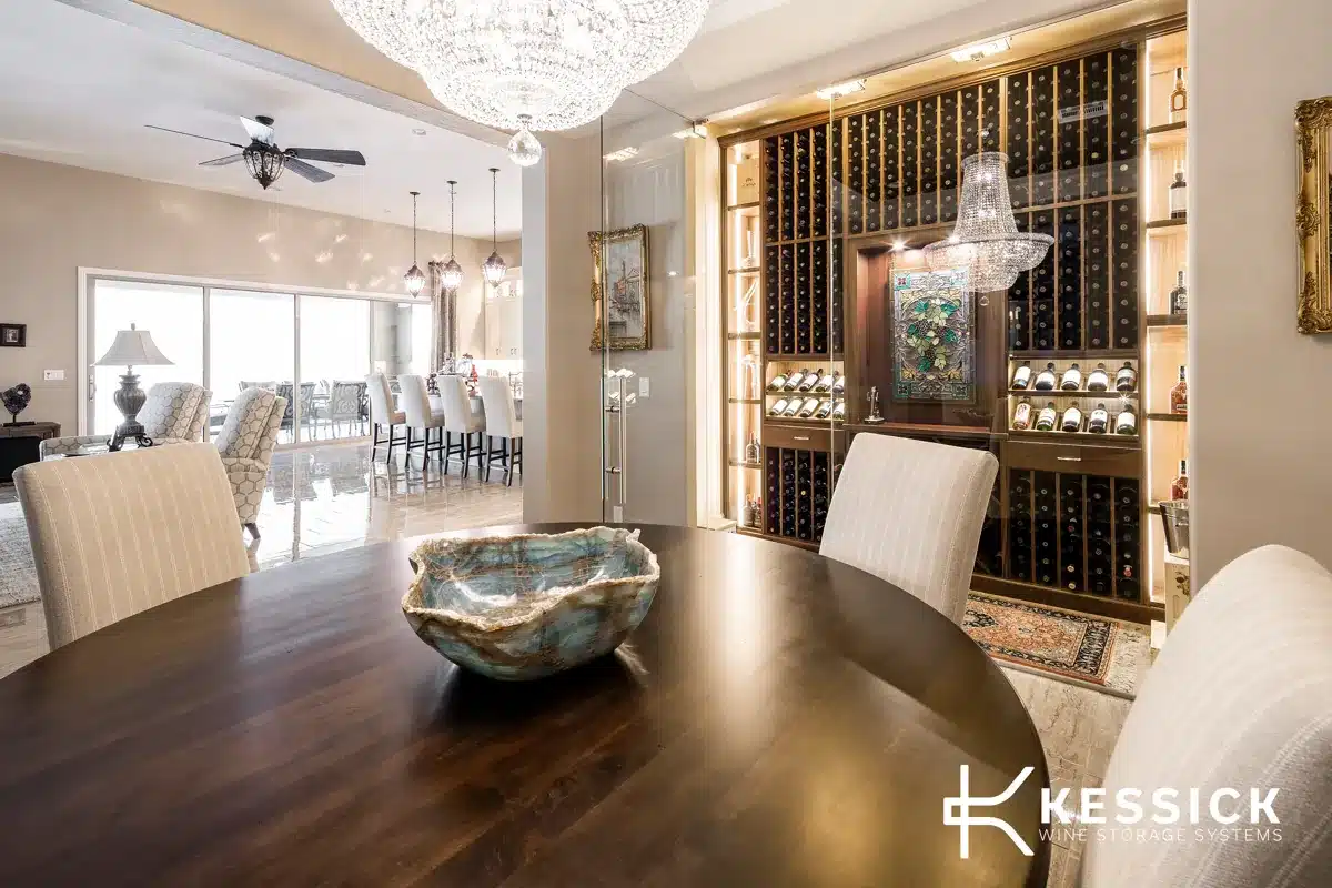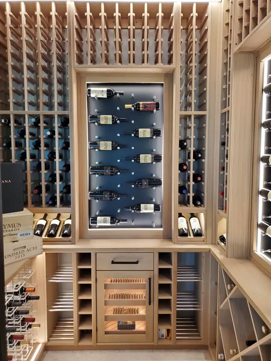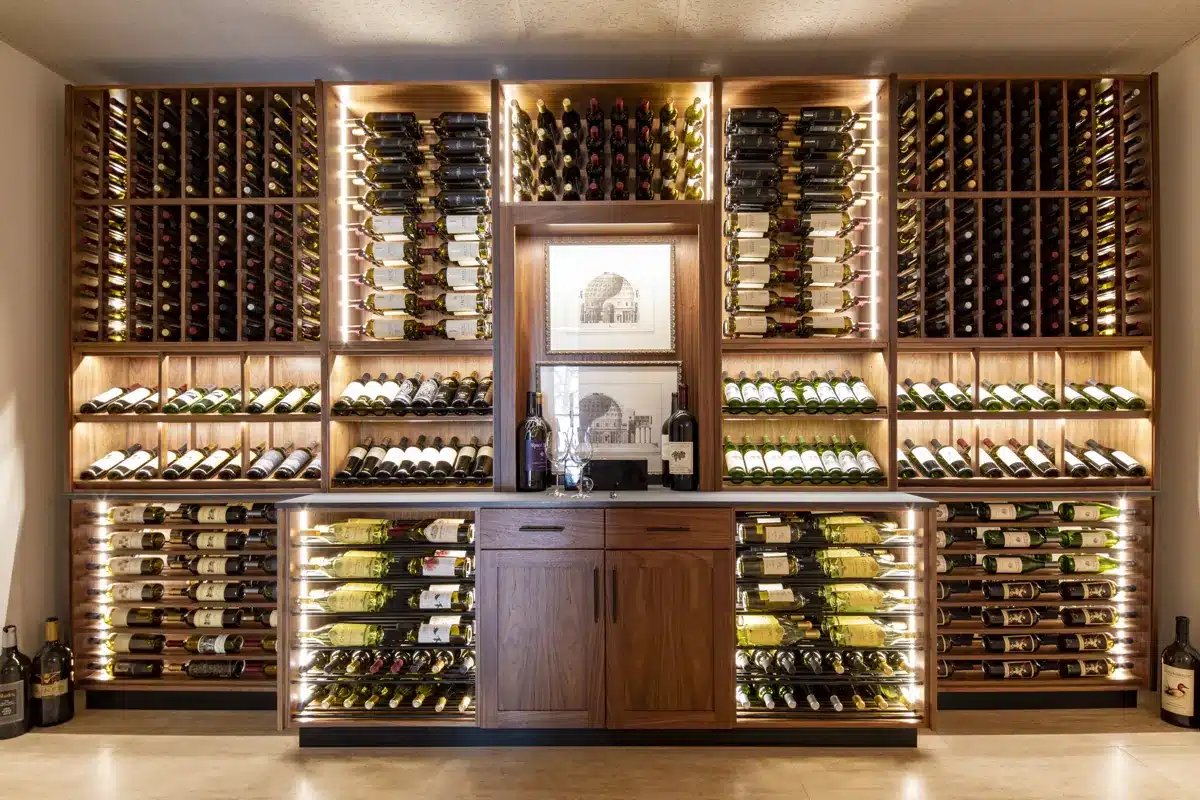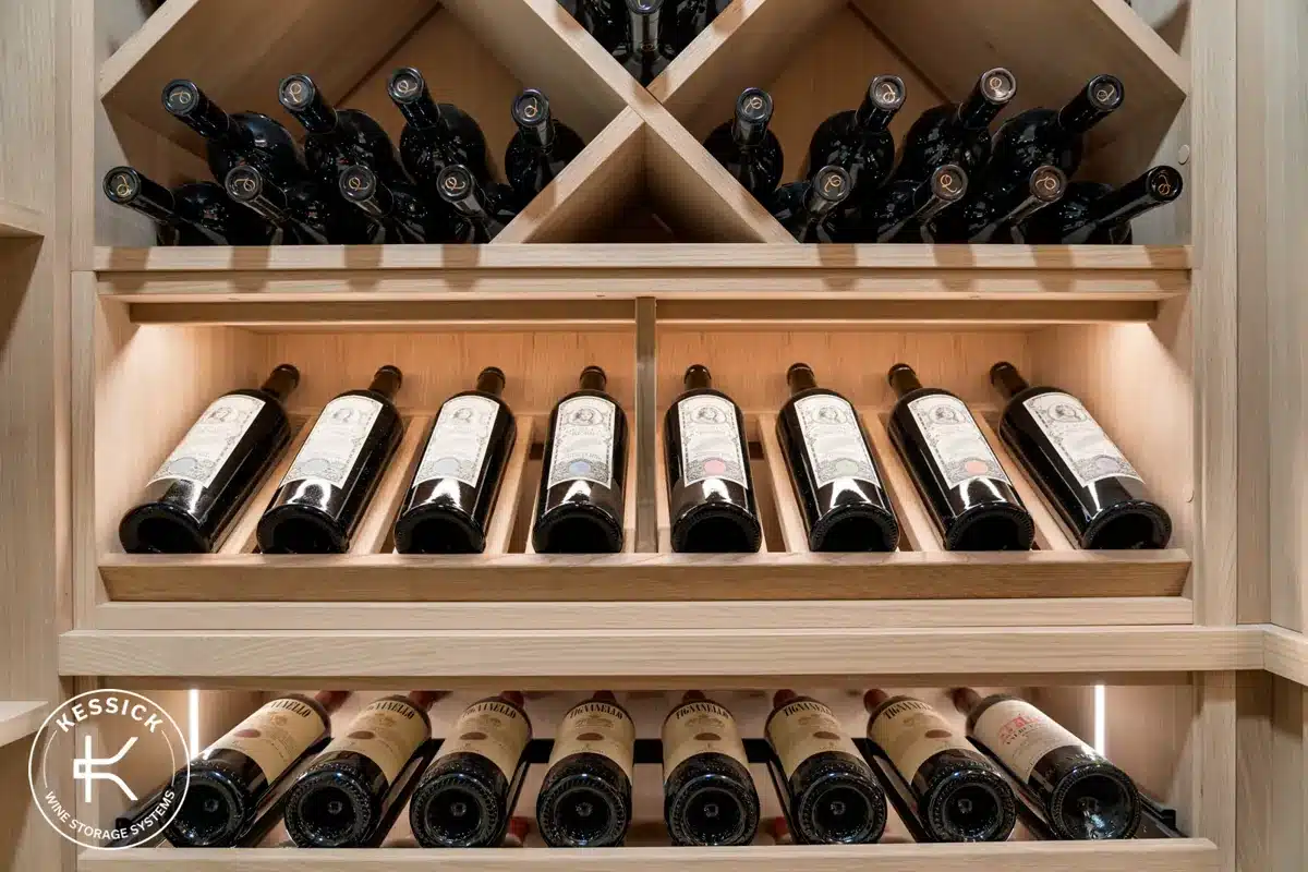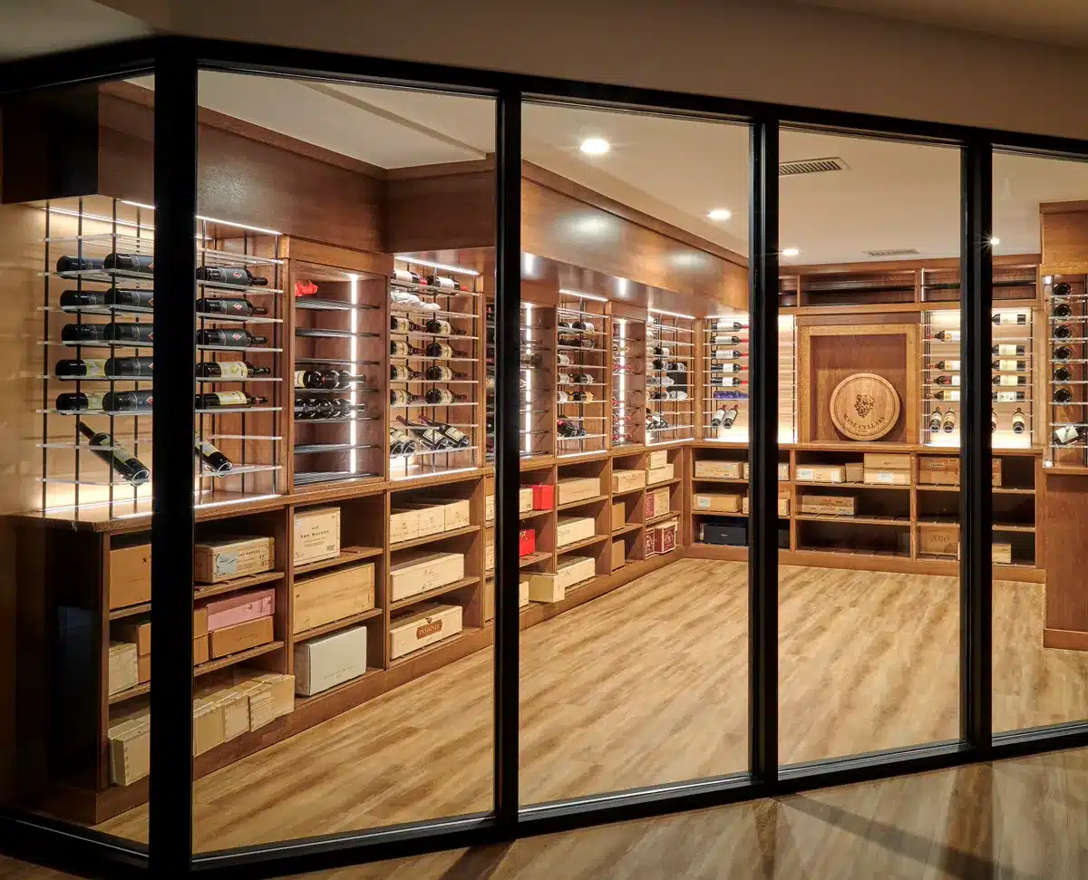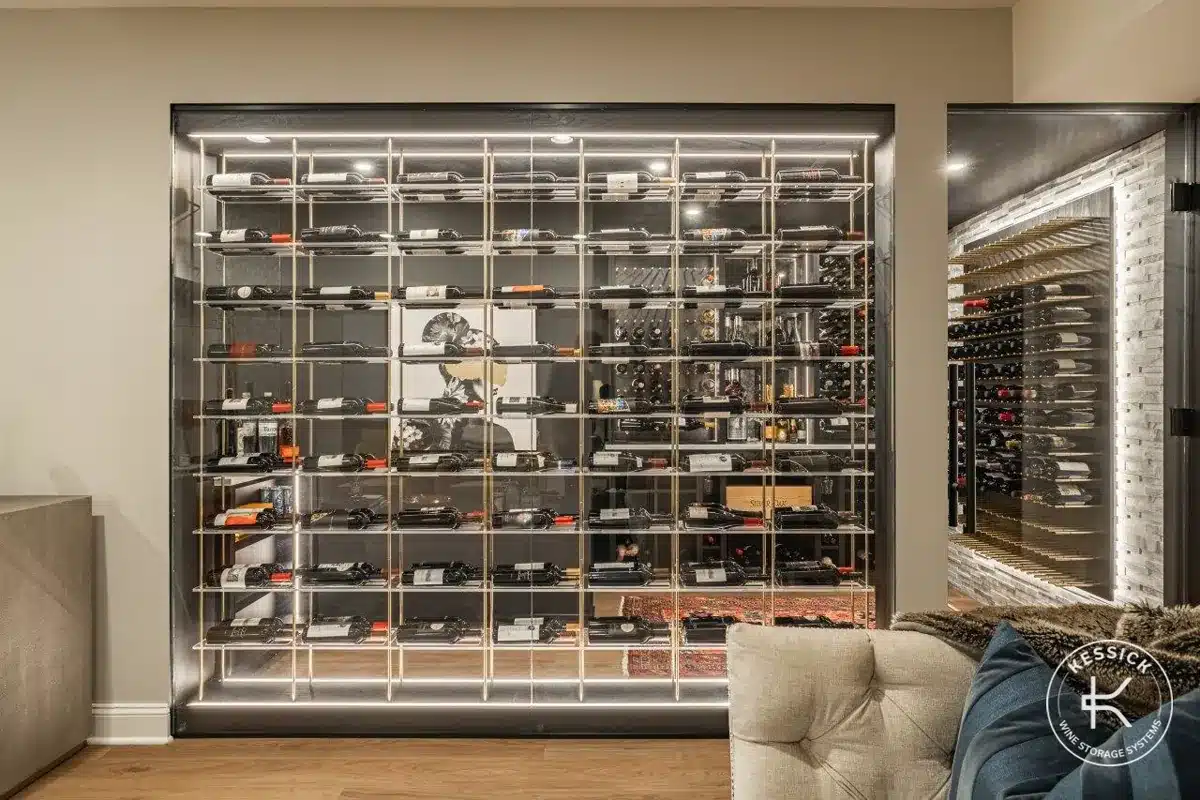 Every project photographed in this gallery was designed and manufactured by Kessick Wine Storage Systems. Kessick sells to a limited network of authorized national dealers.