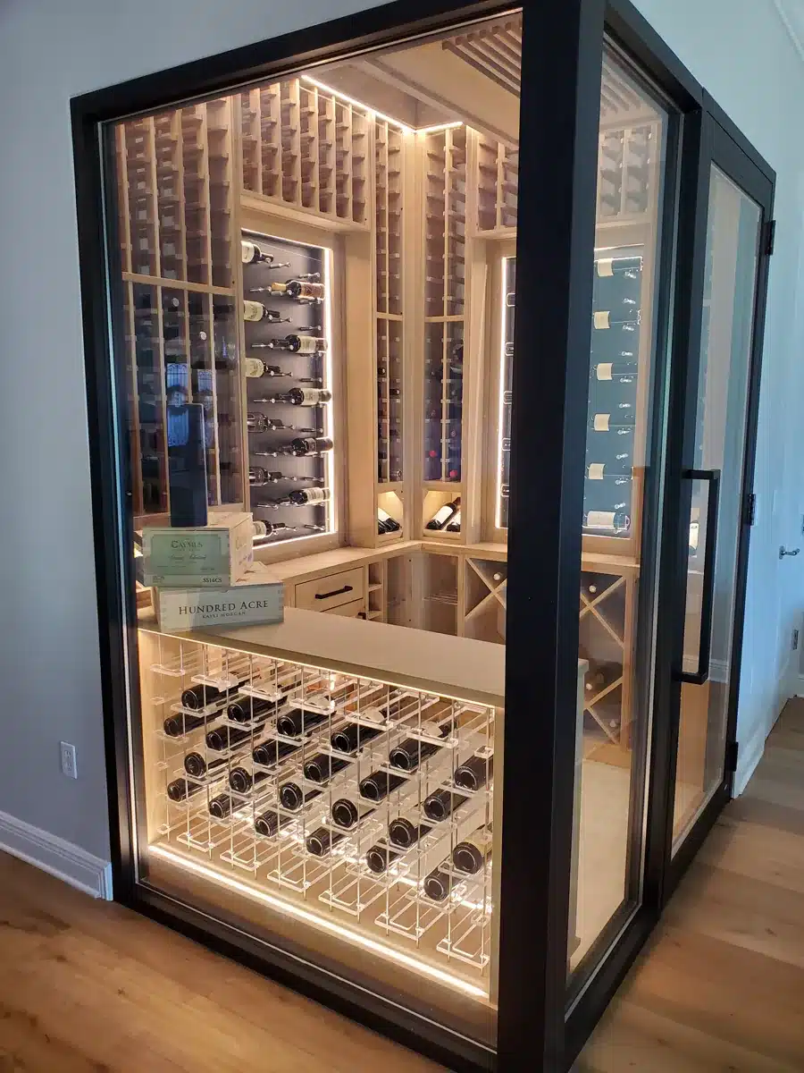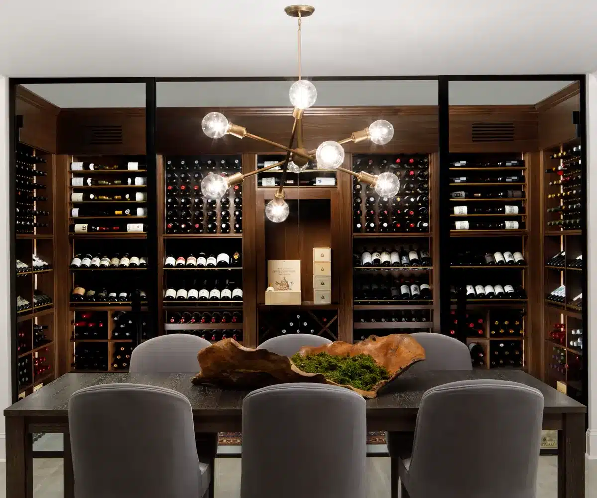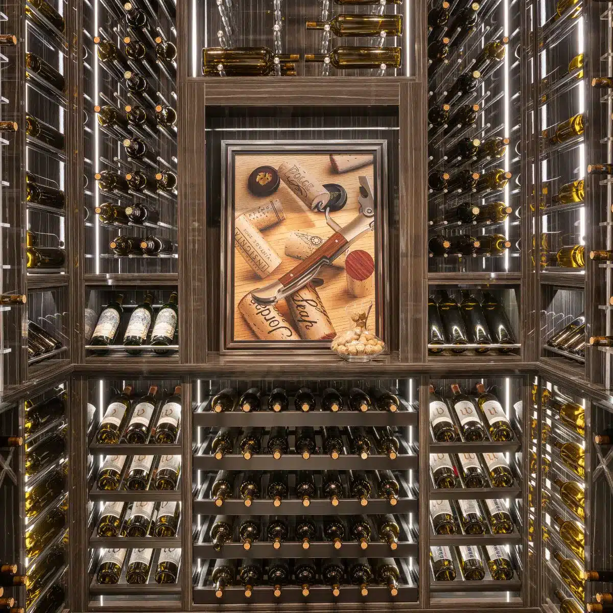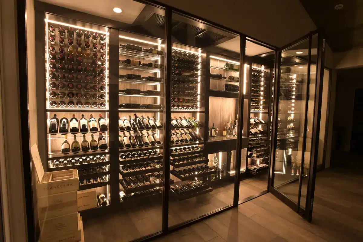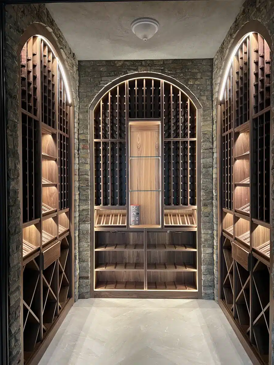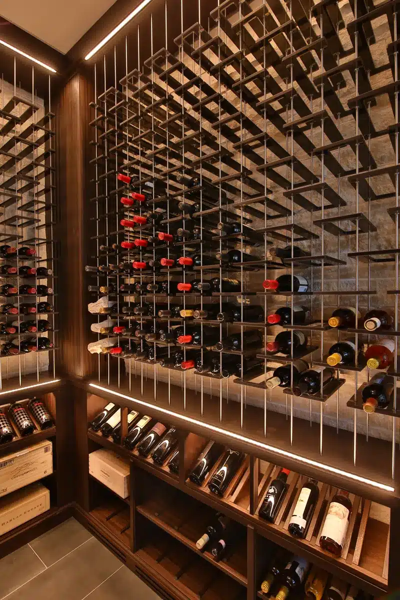 Every project photographed in this gallery was designed and manufactured by Kessick Wine Storage Systems. Kessick sells to a limited network of authorized national dealers.