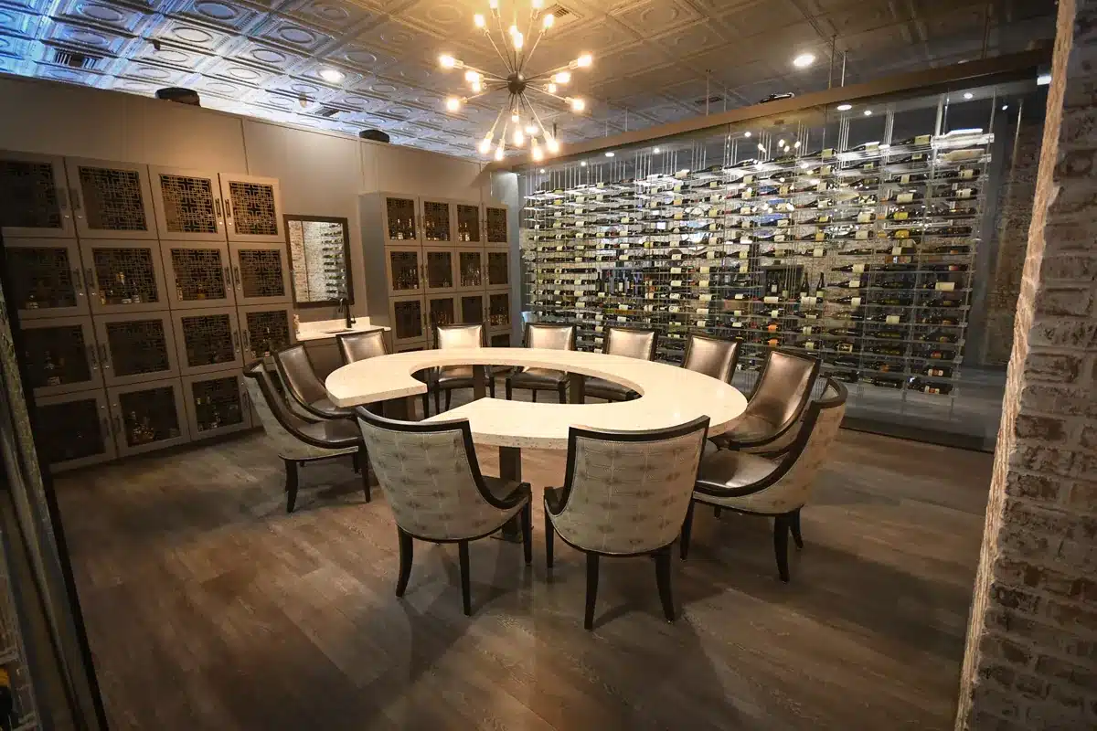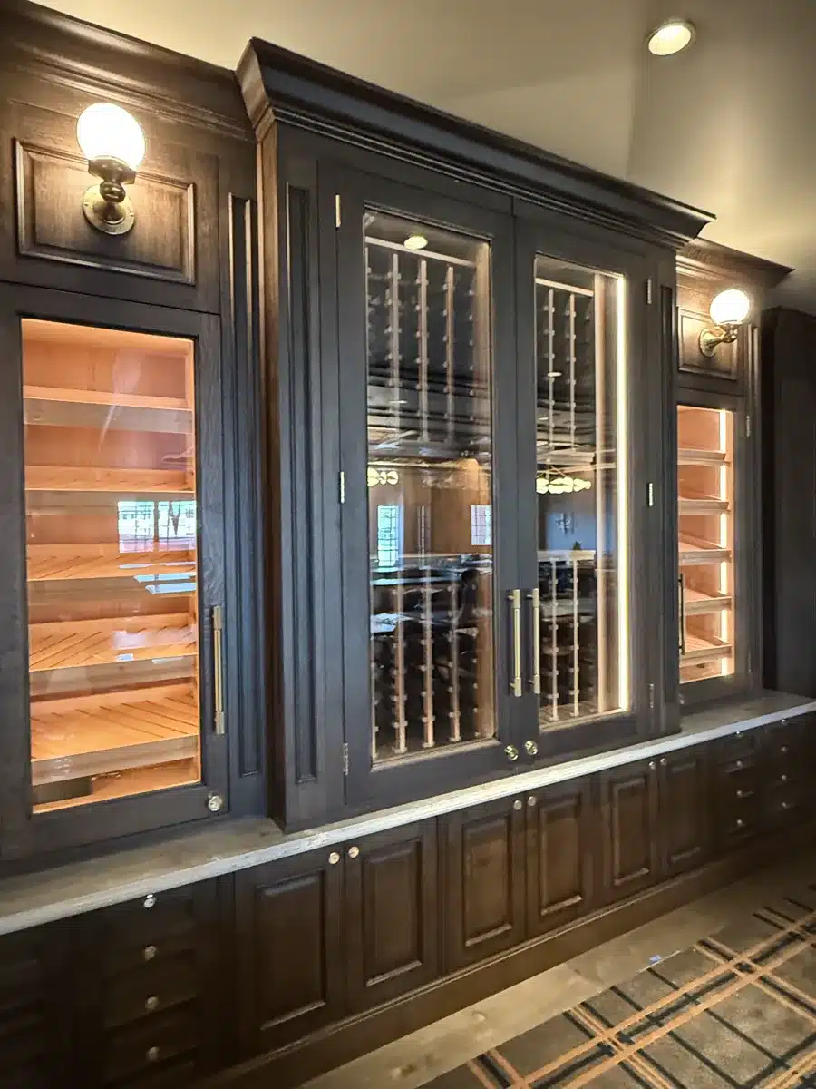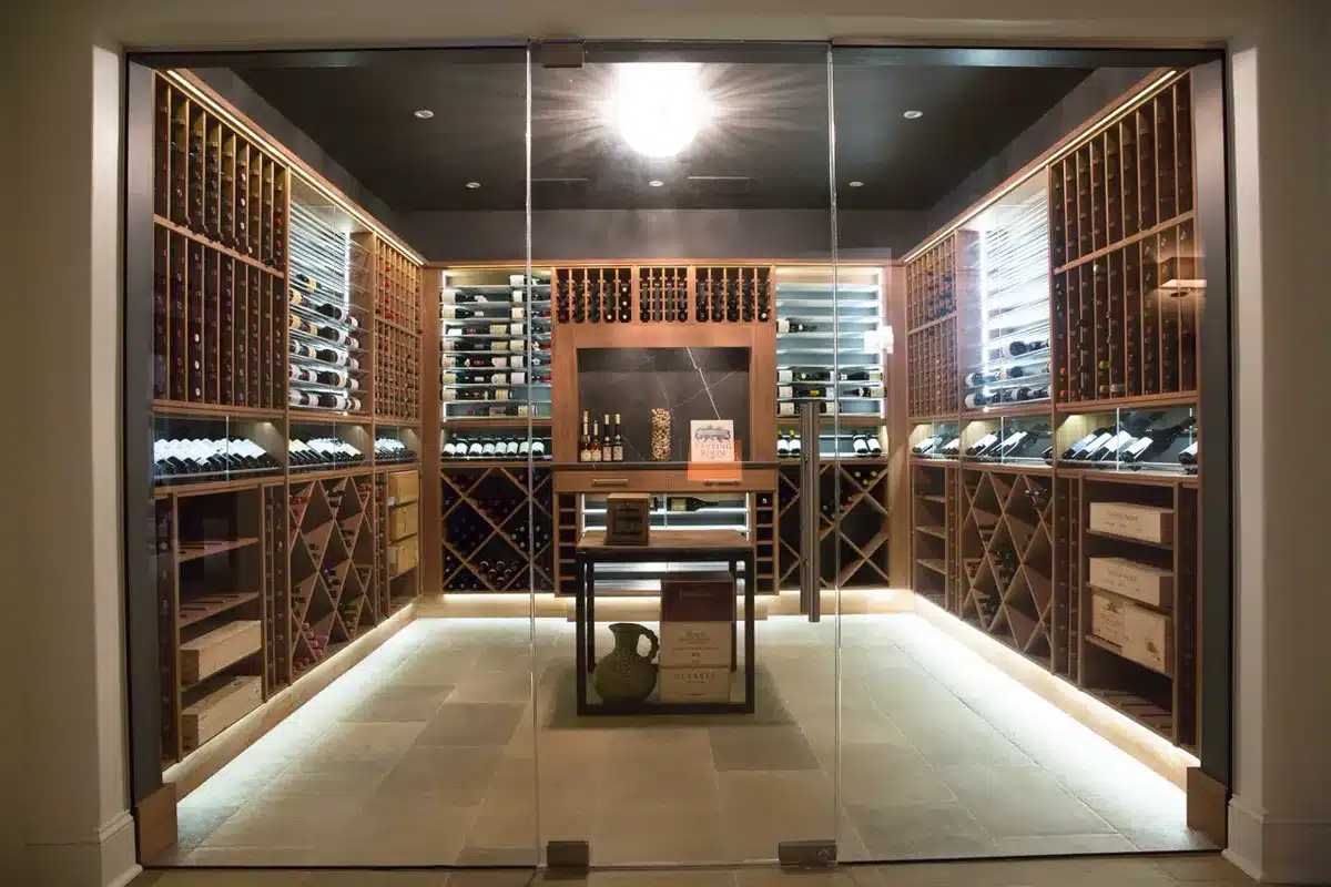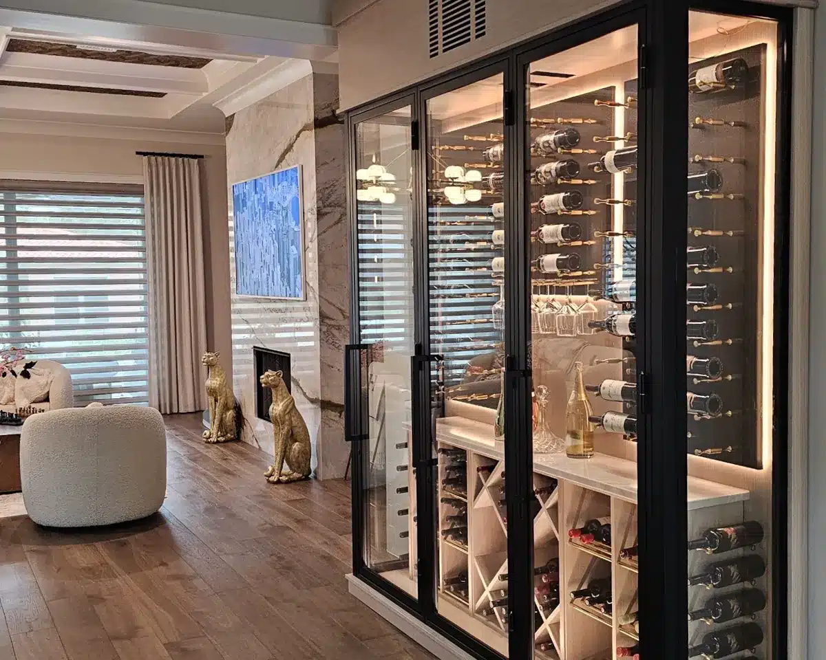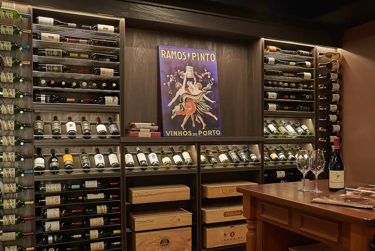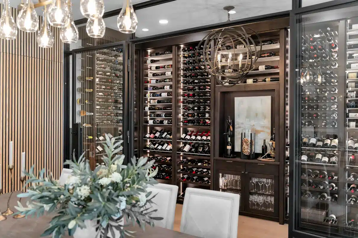 Every project photographed in this gallery was designed and manufactured by Kessick Wine Storage Systems. Kessick sells to a limited network of authorized national dealers.
