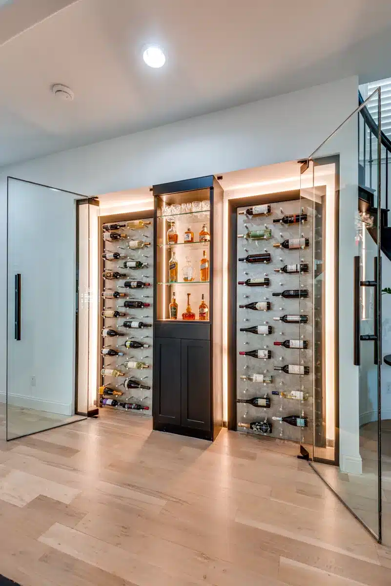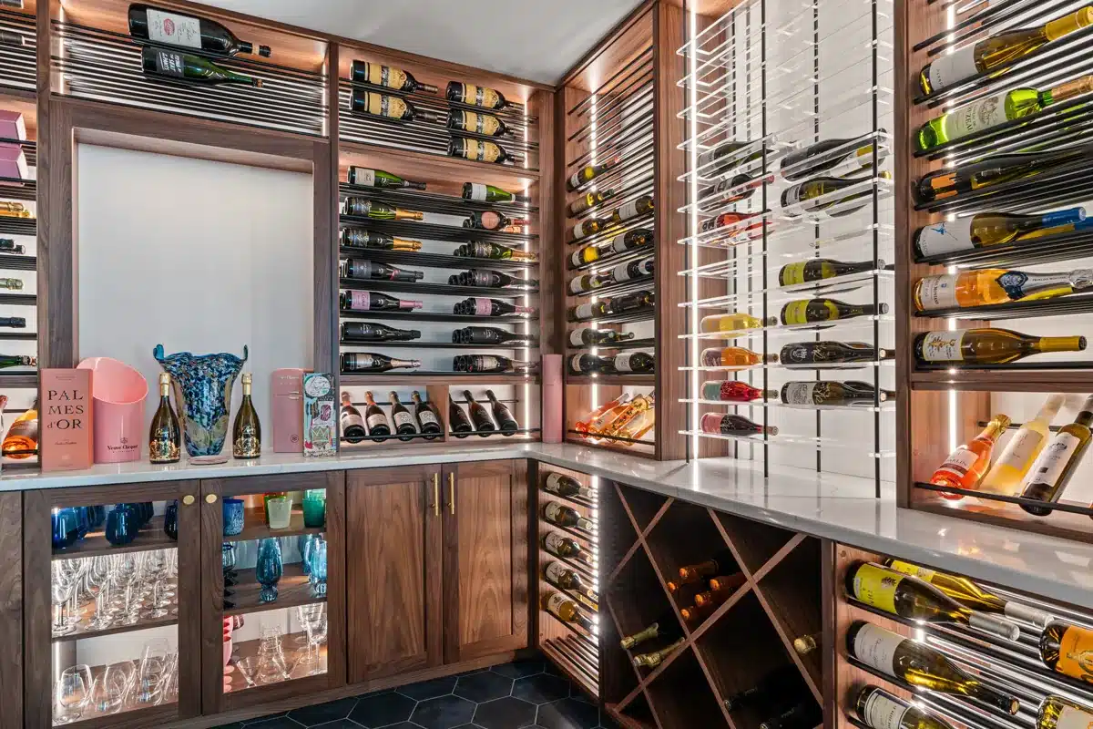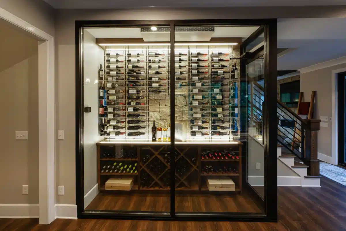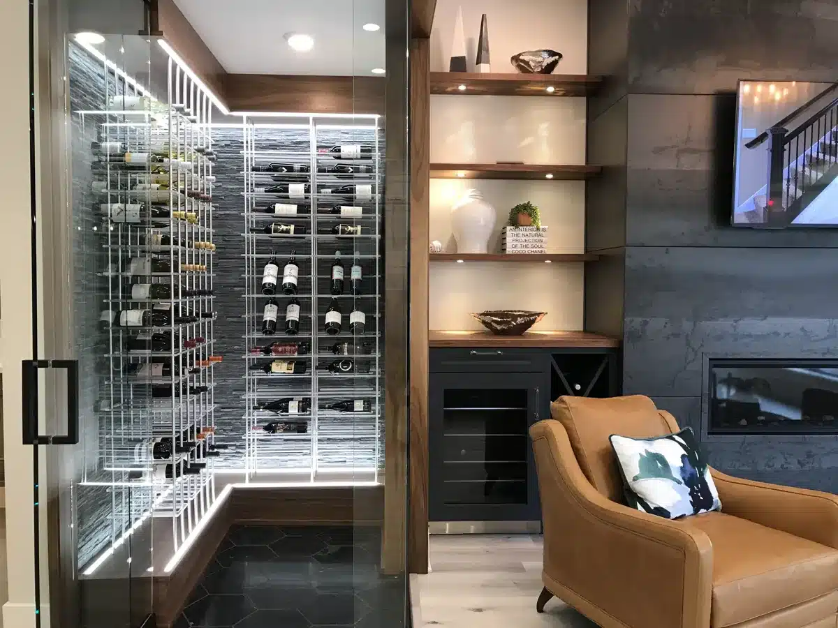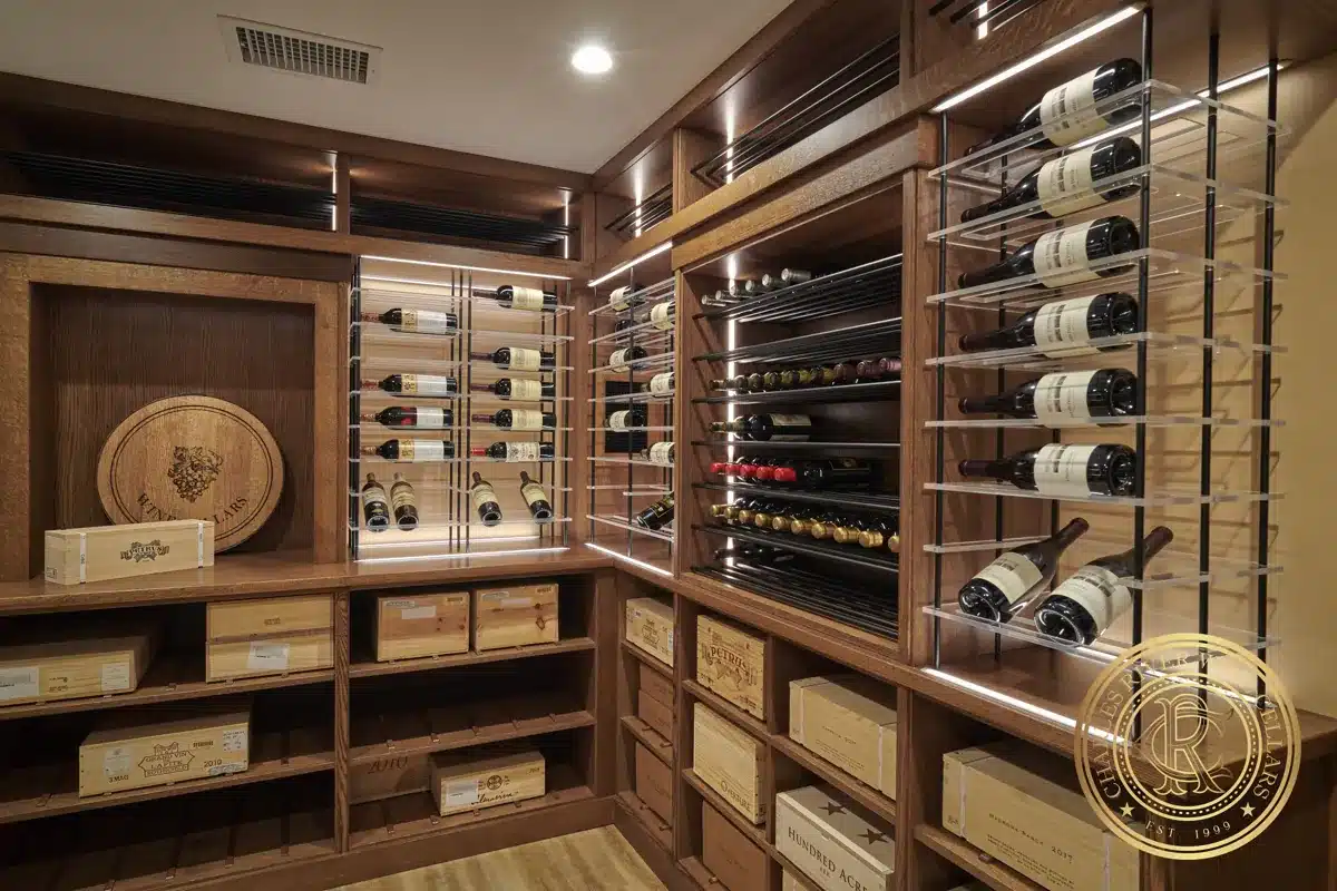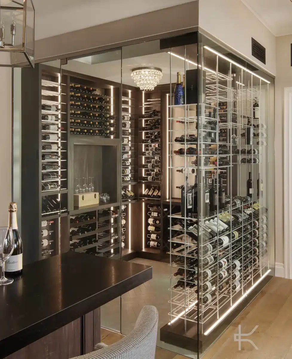 Every project photographed in this gallery was designed and manufactured by Kessick Wine Storage Systems. Kessick sells to a limited network of authorized national dealers.